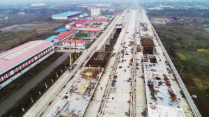 昨天,沪通铁路太仓高架站站台大梁建设现场,施工人员冒着严寒正在浇筑最后几片大梁。太仓高架站站台梁由一站台和二站台组成,共浇筑大梁48片,目...